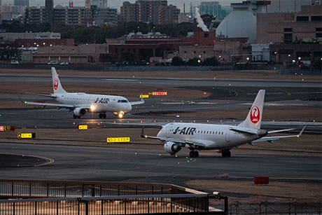 J-AIR is the regional airline for Japan Airlines (JAL) group. We are based at Osaka International Airport, Itami, and operate regional jet flights around Japan, from Memanbetsu, Hokkaido in the north, to the Amami Islands in Kagoshima Prefecture in the south, and many places in between. We will contribute to revitalizing the flow of people and logistics by providing high-quality, friendly services and an air network that meticulously connects local regions.