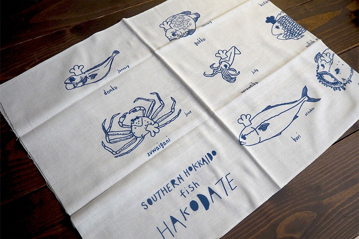 函館さかなてぬぐいは函館近海で水揚げされる魚を題材にしています。色々なシーンで活躍するてぬぐいでぜひ”no fish, no life”な生活を送ってみてはいかがですか。