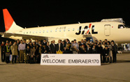 E170ジェイ・エア初号機は、JTA社での就航前改修等の後、11/12夜ジェイ・エアのホームグラウンドである県営名古屋空港に到着。翌13日には関係者向けのお披露目会を実施しました。