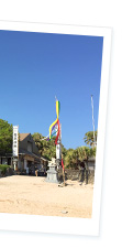 青い海と空、境内の赤、ビロウ樹の緑のコントラストがとても綺麗で、神秘的な雰囲気を感じる私のオススメの場所です。