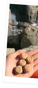 鵜戸神宮は本殿が洞窟の中にあり、全国でも珍しい造りとなっています。洞窟内には、豊玉姫が子どものために残したと言われるお乳岩があり、安産、育児祈願のスポットとなっています。また、鵜戸神宮では、境内近くにある、亀の形をした亀石をめがけ、運玉を投げ入れる願掛けが人気を集めています。男性は左手で、女性は右手で願いを込めて投げて見てください。枡形のくぼみに見事、運玉が入ると、願いが叶うかもしれません。